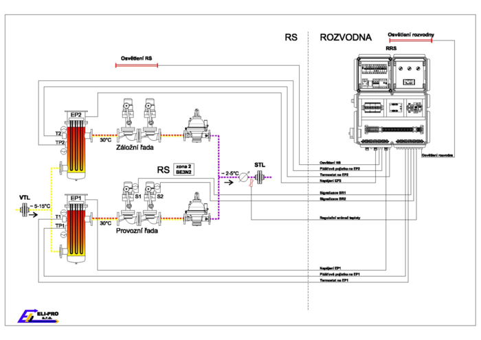 Klady a zápory: snadná výměna za porouchaný starý rozvaděč s tyristorovou regulací, ovládací prvky rozvaděče jsou totožné s el. rozvaděčem s tyristorovou regulací, polovodičové spínání SSR (spínání v nule), nouzové zapnutí el. předehřevu v případě poruchy regulace